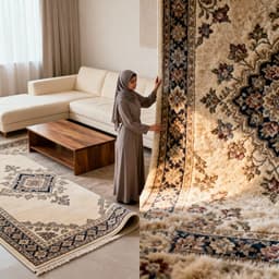 یکی از تستهای جالب، تا کردن قسمتی از فرشه. فرش دستباف انعطافپذیره و وقتی تا میخوری، حس نرمی و ملایم بودنش حفظ میشه. اما فرش ماشینی معمولاً خشکتره و موقع تا کردن صدای خشخش میده.